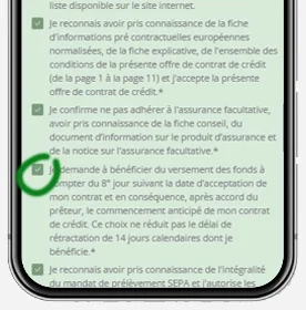 Lorsque votre demande est acceptée, vous demandez le virement anticipé sur la page de signature du contrat.