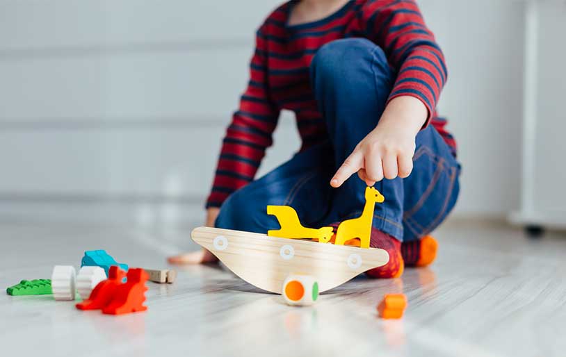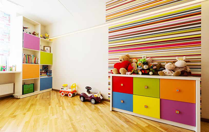 Le rangement est rarement la priorité d‘un enfant. Si vous souhaitez que l’espace de jeux reste présentable, à vous d’organiser les choses ! L’idéal ? Des rayonnages bas, faciles à atteindre. Dans un placard, veillez à installer les objets les plus lourds en bas afin d’éviter les chutes. Les petites caisses en plastiques empilables valent mieux qu’un gros coffre à jouet. Mais si vous choisissez néanmoins cette solution de rangement, veillez à ce que l’abattant ne soit pas trop lourd. Si vous êtes bricoleur et souhaitez gagnez de la place, fabriquez donc une petite estrade sous laquelle vous organiserez des rangements.